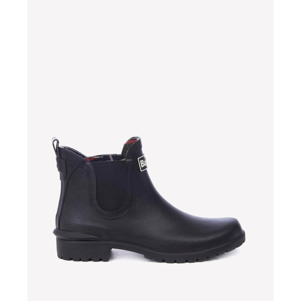 A fashion-focused twist on the classic wellington, this Chelsea-style boot features Barbour's signature tartan lining and a commando-style sole. Finished with a Barbour logo to the outer.